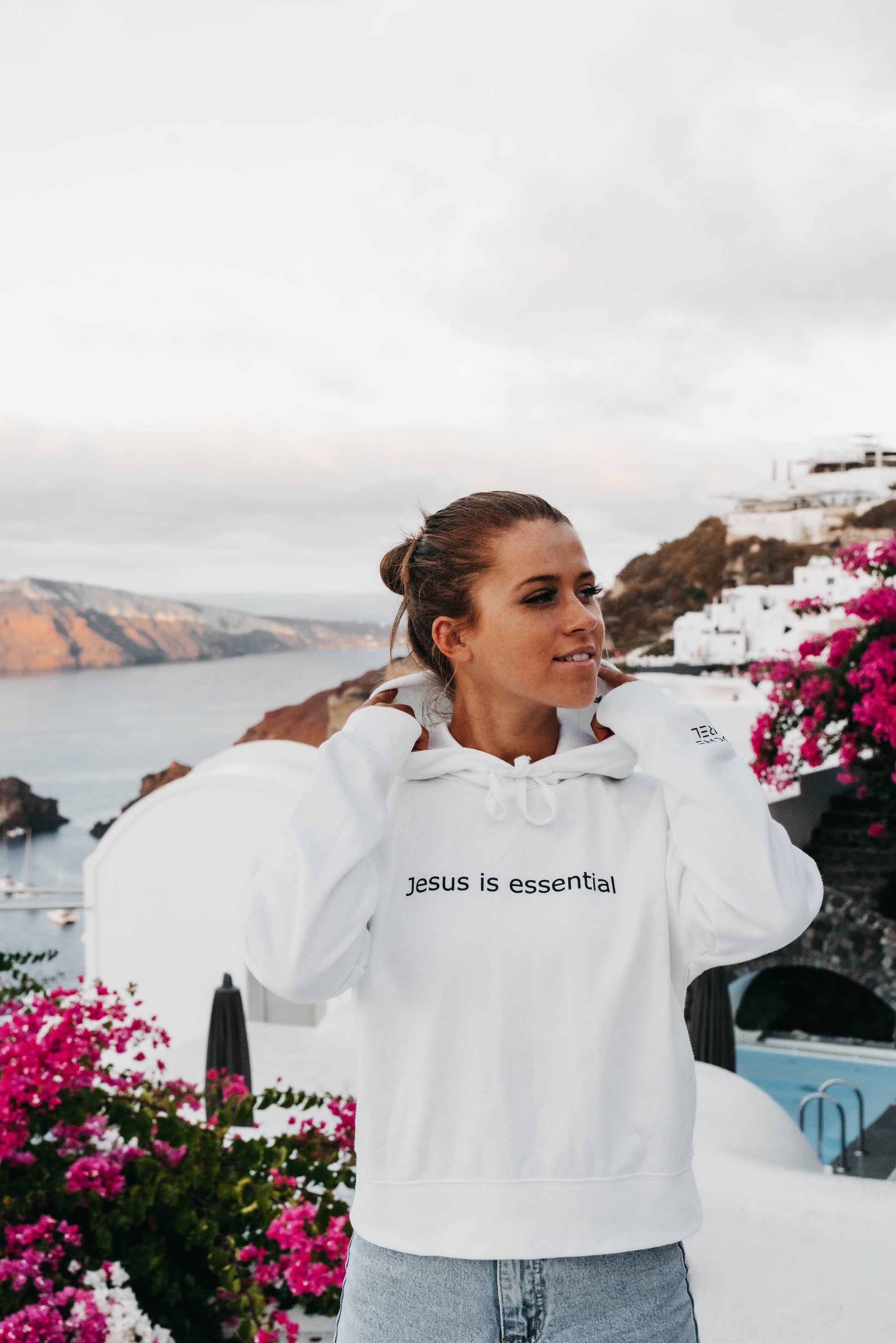 " JESUS IS ESSENTIAL " Women's White Hoodie