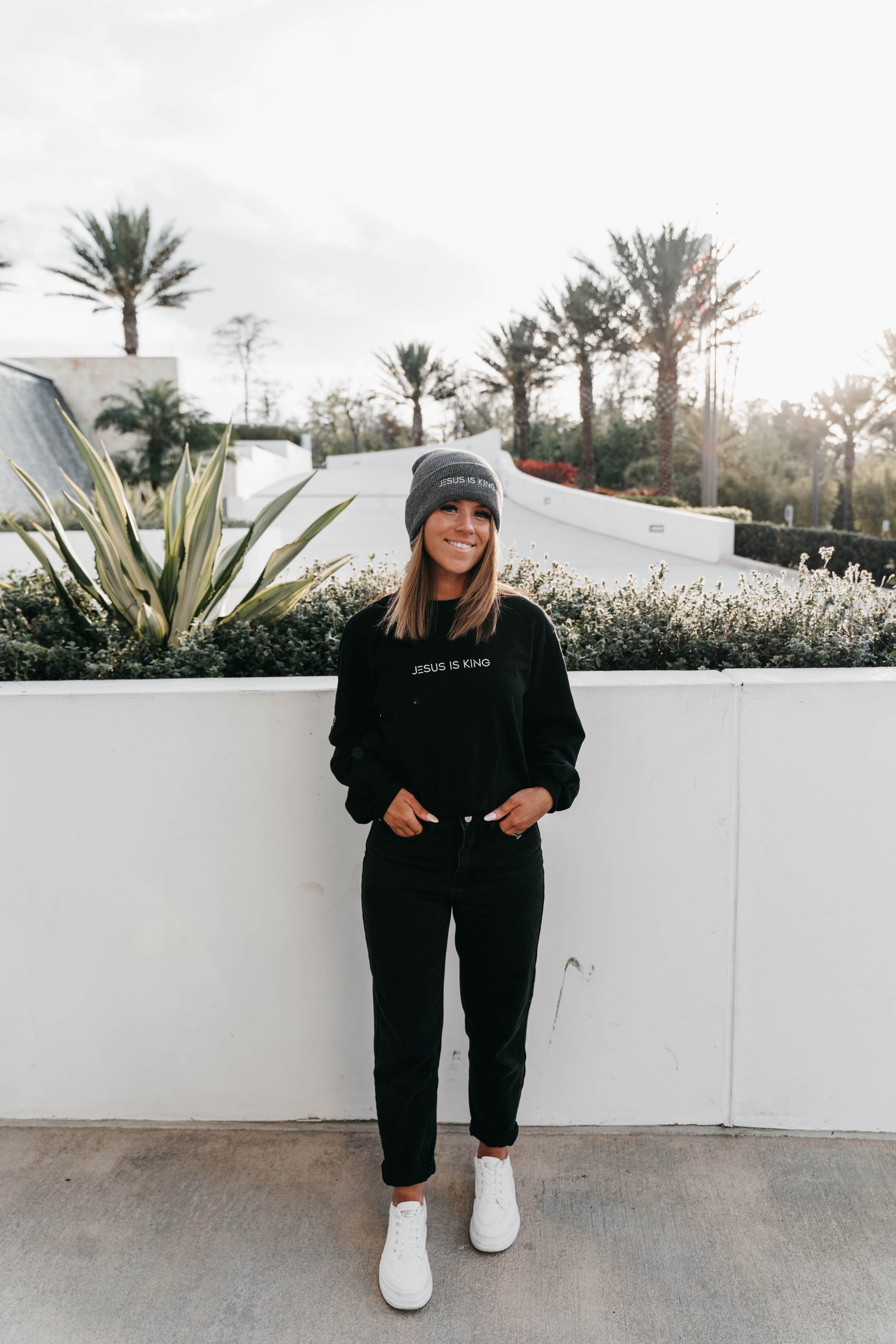 stay warm in style and express your faith with our classic black unisex beanie. crafted for both comfort and fashion, this cozy beanie features the empowering phrase 'JESUS IS KING' delicately embroidered on the front. made for those who appreciate timeless simplicity with a touch of spirituality, this beanie is the perfect accessory for chilly days and cool nights. embrace warmth and faith in every wear with this essential addition to your winter wardrobe