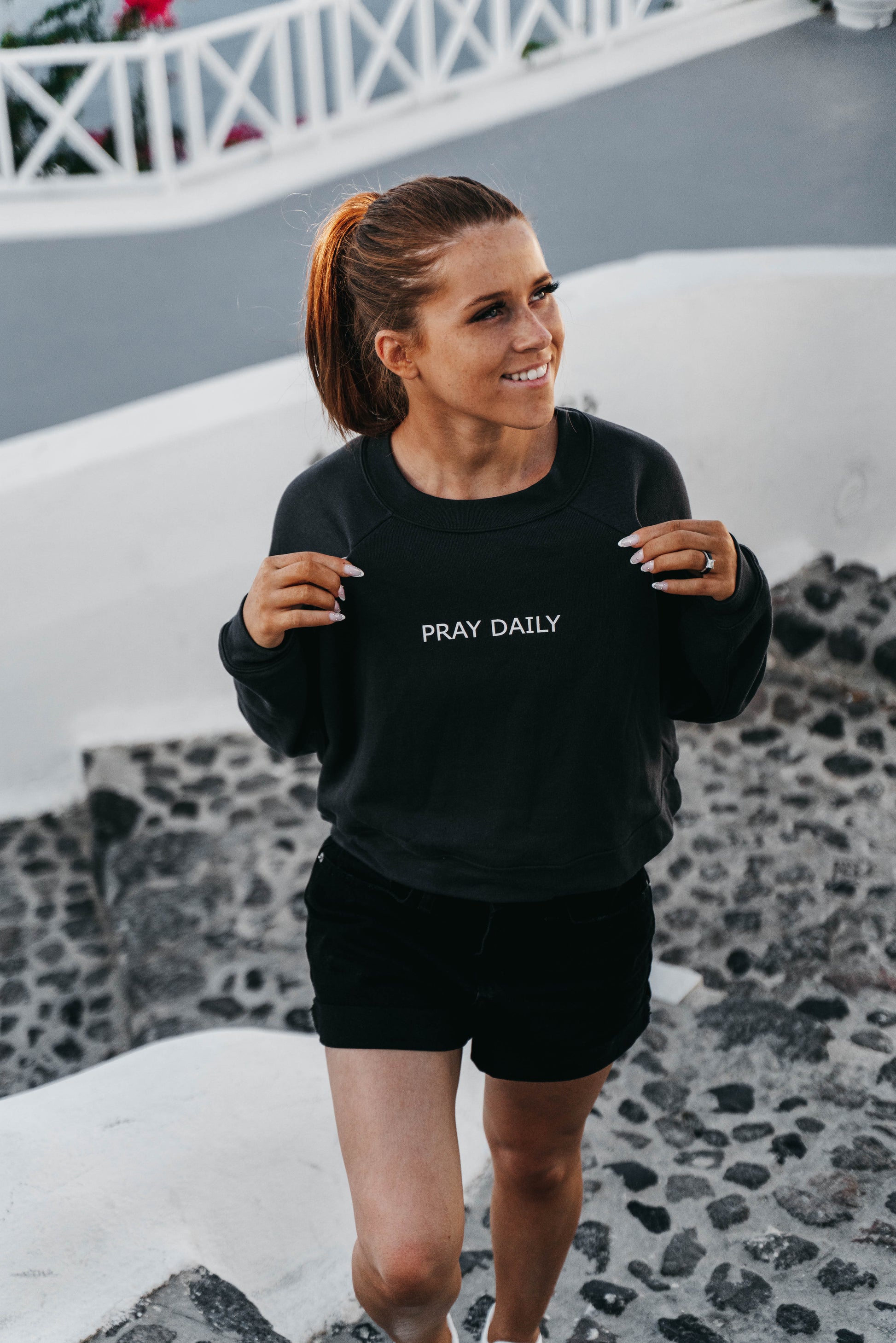 " PRAY DAILY " Women's Charcoal Grey Crewneck