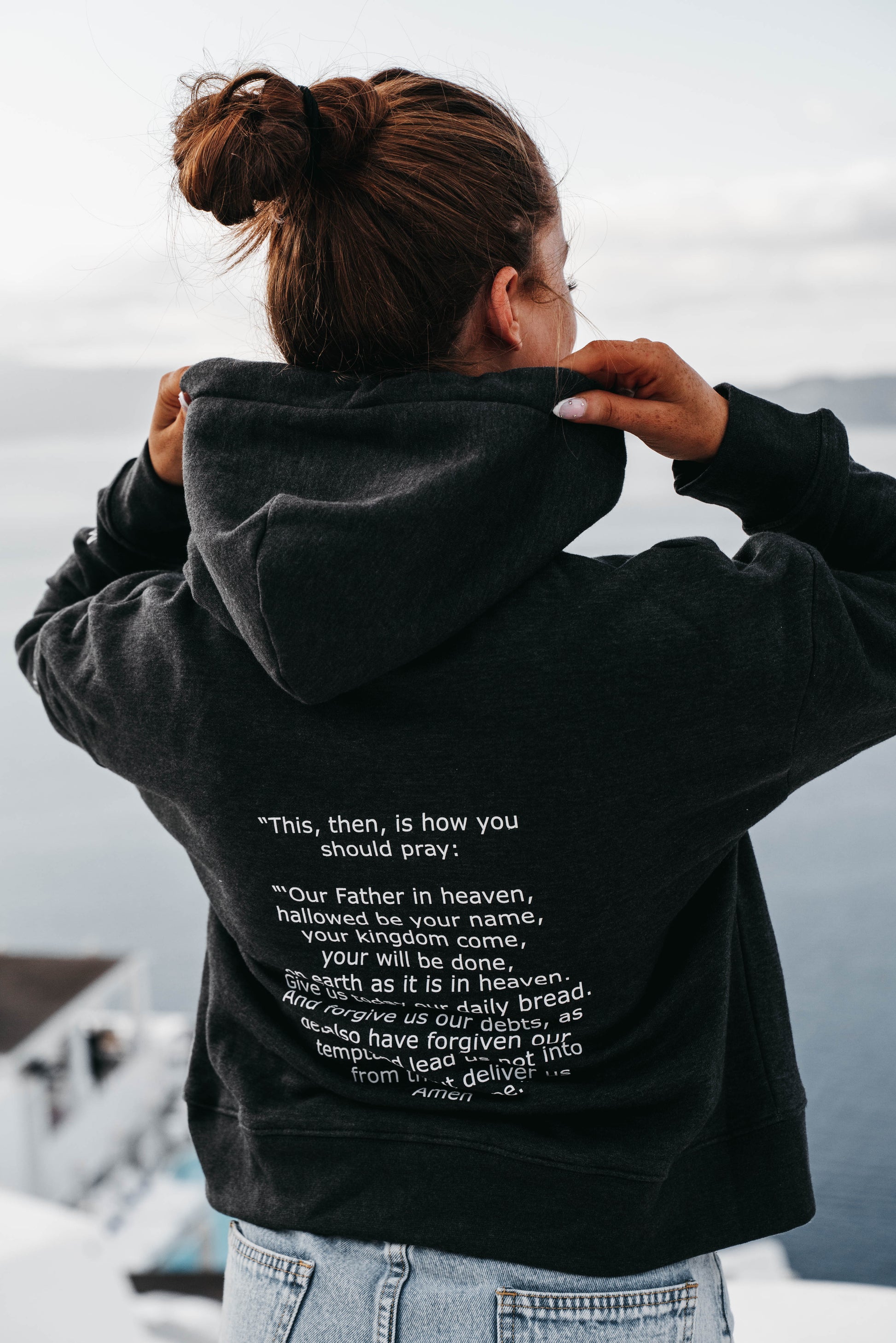 elevate your wardrobe with our inspiring hoodie, designed to keep you cozy and connected to your faith. on the front, the empowering message 'PRAY DAILY' is boldly printed, serving as a constant reminder of the importance of prayer in our lives. turn heads with the impactful display of the Lord's Prayer on the back, accompanied by the reference Matthew 6:9-13, where it's found in the Bible, printed on the sleeve. crafted from premium materials for comfort and durability, this hoodie is perfect for both casual wear and sharing your faith. stay warm, stylish, and spiritually uplifted with our 'PRAY DAILY' hoodie