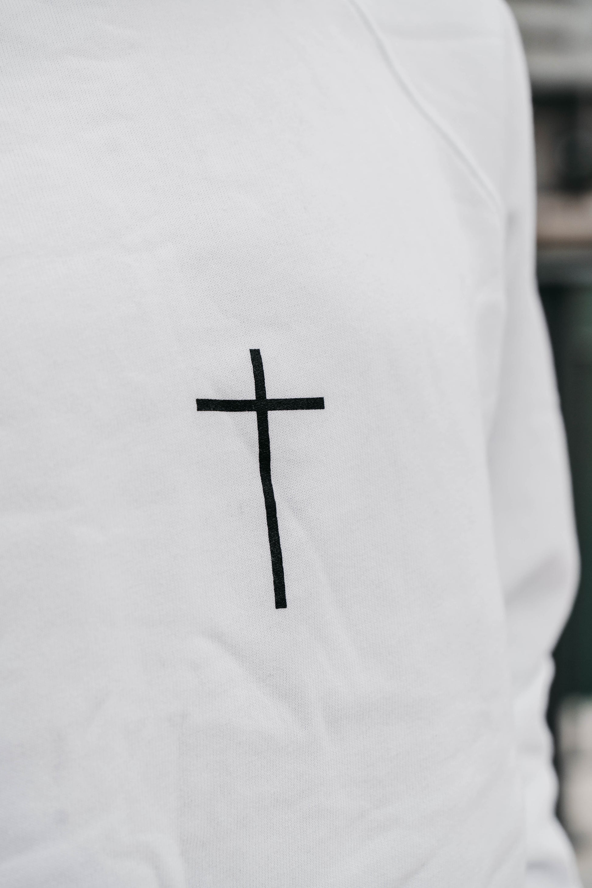 embrace the profound grace of redemption with our striking crewneck sweatshirt. featuring a beautifully detailed cross printed on the front, this sweatshirt serves as a timeless symbol of faith and salvation. turn heads and inspire reflection as you wear your beliefs boldly. on the back, the poignant phrase 'WE OWE A DEBT WE CANNOT PAY, HE PAID A DEBT HE DID NOT OWE' is elegantly printed, reminding us of the sacrificial love of Christ. crafted from premium materials for comfort and durability, this crewneck is perfect for everyday wear, offering both style and spiritual depth. wear your faith boldly and stay warm in body and spirit with our captivating crewneck
